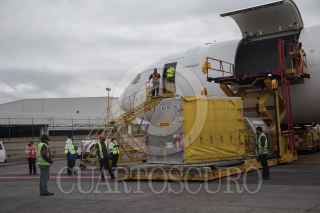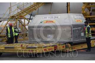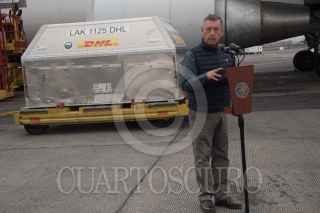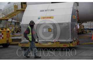 CIUDAD DE MÉXICO. 13MAYO2021.- Pedro Zenteno, director de Birmex en el arribo de vacunas Pfizer, provenientes de Cincinnati, Estado Unidos, esta mañana en el Aeropuerto Internacional de la Ciudad. FOTO: VICTORIA VALTIERRA/CUARTOSCURO.COM