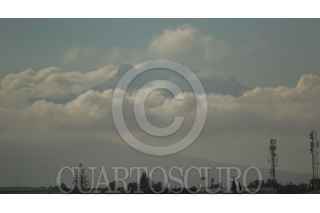 CIUDAD DE MÉXICO. 13MAYO2021.- Volcan "La Mujer Dormida" rodeado de nubes visto desde el oriente de la Capital Mexicana. Avión despegando del Aeropuerto de la Ciudad. FOTO: VICTORIA VALTIERRA/CUARTOSCURO.COM