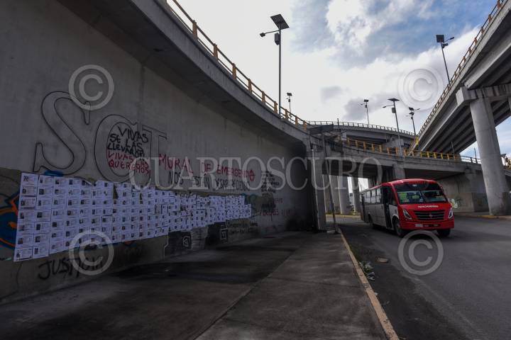 TOLUCA, ESTADO DE MÉXICO, 13MAYO2021.- Integrantes del colectivo Mujeres entre las Cebollas realizaron un mural de emergencia en donde colocaron fichas de búsqueda de mujeres que han desaparecido en el Estado de México en los meses de enero a abril del 2021 en el distribuidor vial de la Carretera Toluca Naucalpan, acompañado por las leyendas “Mural de Emergencia, Nos Están Desapareciendo” FOTO: CRISANTA ESPINOSA AGUILAR /CUARTOSCURO.COM