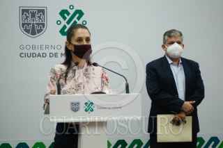 CIUDAD DE MÉXICO, 13MAYO2021.- Claudia Sheinbaum, jefa de gobierno de la capital del país, ofreció una videoconferencia de prensa donde abordó los temas de la vacunación en las distintas alcaldías. Sheinbaum estuvo acompañada por Luis Humberto Fernández, director de la Autoridad Educativa de la Ciudad de México. FOTO: GCDMX /CUARTOSCURO.COM