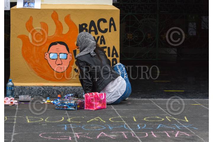 TOLUCA, ESTADO DE MÉXICO, 13MAYO2021.- Integrantes de la Asamblea Universitaria UAEMex solicitaron un diálogo con el rector de la máxima casa de estudios Alfredo Barrera Baca y el Consejo Universitario para tratar la situación de la universidad y temas de interés estudiantil como género, democracia y gratuidad; fueron recibidos por Juvenal Vargas Muñoz, Secretario de Rectoría. Realizaron una manifestación pacífica instalando un tendedero de denuncia, música, pinta de frases y lectura de su desplegado. FOTO: CRISANTA ESPINOSA AGUILAR /CUARTOSCURO.COM