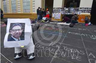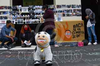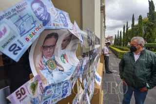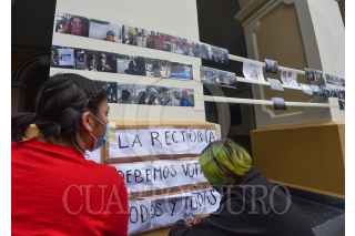 TOLUCA, ESTADO DE MÉXICO, 13MAYO2021.- Integrantes de la Asamblea Universitaria UAEMex solicitaron un diálogo con el rector de la máxima casa de estudios Alfredo Barrera Baca y el Consejo Universitario para tratar la situación de la universidad y temas de interés estudiantil como género, democracia y gratuidad; fueron recibidos por Juvenal Vargas Muñoz, Secretario de Rectoría. Realizaron una manifestación pacífica instalando un tendedero de denuncia, música, pinta de frases y lectura de su desplegado. FOTO: CRISANTA ESPINOSA AGUILAR /CUARTOSCURO.COM