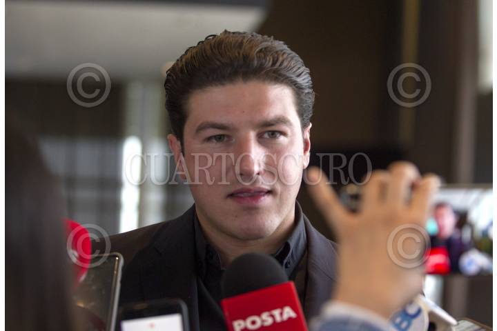 SAN PEDRO GARZA GARCÍA, NUEVO LEÓN, 14MAYO2021.- Samuel García, candidato a la gubernatura de Nuevo León por Movimiento Ciudadano, sostuvo una reunión de campaña con empresarios en el Club Industrial. Declara que la Fiscalía General de la República no le ha notificado sobre alguna demanda ni tampoco en contra su esposa, papá o su suegro. FOTO: GABRIELA PÉREZ MONTIEL / CUARTOSCURO.COM