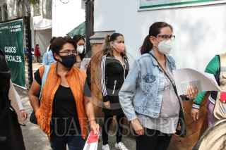 CIUDAD DE MÉXICO, 14MAYO2021.- Continúa la jornada de vacunación a mujeres embarazadas y adultos de 50 a 59 años en la alcaldía Cuauhtémoc. Durante el transcurso del día capitalinos acudieron a recibir su primera dosis de vacuna P-fizer contra Covid-19 en la Escuela Primaria Benito Juárez. FOTO: ROGELIO MORALES /CUARTOSCURO.COM