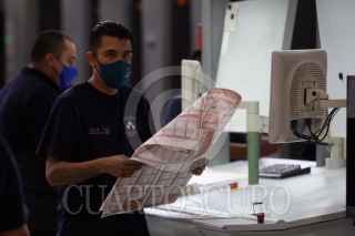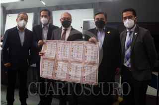 CIUDAD DE MÉXICO, 12MAYO2021.- Ariel García Contreras, director de Talleres Gráficos de México, y Mario Velázquez Miranda, consejero Presidente del Instituto Electoral de la Ciudad de México (IECM), durante la presentación de las boletas electorales parea el próximo proceso electoral local ordinario 2020-2021, el cual se realizó en las instalaciones de los Talleres Gráficos de México. FOTO: GRACIELA LÓPEZ /CUARTOSCURO.COM
