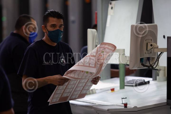 CIUDAD DE MÉXICO, 12MAYO2021.- Ariel García Contreras, director de Talleres Gráficos de México, y Mario Velázquez Miranda, consejero Presidente del Instituto Electoral de la Ciudad de México (IECM), durante la presentación de las boletas electorales parea el próximo proceso electoral local ordinario 2020-2021, el cual se realizó en las instalaciones de los Talleres Gráficos de México. FOTO: GRACIELA LÓPEZ /CUARTOSCURO.COM