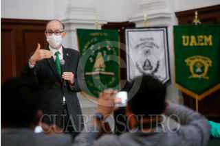 TOLUCA, ESTADO DE MÉXICO, 14MAYO2021.- Carlos Eduardo Barrera Díaz tomó protesta como nuevo Rector de la Universidad Autónoma del Estado de México para el periodo 2021-2025 ante el Consejo Universitario. FOTO: CRISANTA ESPINOSA AGUILAR /CUARTOSCURO.COM
