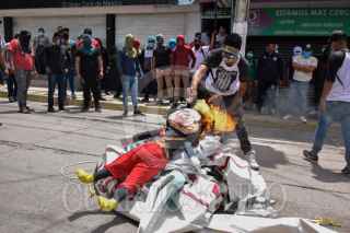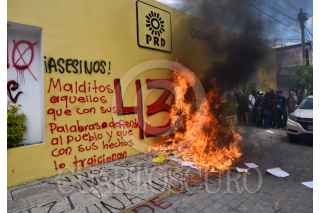 CHILPANCINGO, GUERRERO, 14FEBRERO2021.- Estudiantes de la Normal Rural, “Raúl Isidro Burgos” de Ayotzinapa vandalizaron la sede del Comité Ejecutivo Estatal (CEE) del partido de la Revolución Democrática (PRD) y la casa de campaña de la candidata de Morena, Evelyn Salgado Pineda, para deslindarse de las declaraciones hechas por egresados y establecer que su escuela no apoya a ningún partido político. Los normalistas llegaron al edificio del PRD, se introdujeron en él y destruyeron todo lo que encontraron en el lugar detonaron petardos y quemaron monigotes con la cara de Ángel Aguirre Rivero, también echaron papelería que sustrajeron del edificio. Afuera del inmueble realizaron pintas en las que establecen que la normal de Ayotzinapa no apoya a ningún partido político y que aún les faltan 43 estudiantes. La acción violenta duró aproximadamente 50 minutos y durante este tiempo ninguna autoridad se presentó al lugar para contener el acto vandálico. Los estudiantes confirmaron que a partir del 19 de junio se iniciará una jornada de búsqueda de restos en puntos donde podrían existir restos humanos y entre estos podría haber de sus 43 compañeros que desaparecieron en la ciudad de Iguala el 26 de septiembre del 2014. Después los normalistas fueron hasta un hotel, el cual es conocido por ser donde despacha el senador con licencia Félix Salgado Macedonio y muchos lo señalan por ser la casa de campaña de él y ahora de su hija, situado en la avenida Lázaro Cárdenas a un costado del café punta del cielo, de ahí sacaron una lona con la imagen de la candidata Evelyn Salgado y se deslindaron completamente de cualquier partido político. En este sitio los normalistas rompieron la puerta a golpes y se metieron por la fuerza, ahí sacaron un monigote con la cara de José Luis González de la Vega Otero, quien fue secretario de educación en los gobiernos de Zeferino Torreblanca y Héctor Astudillo, y actualmente participa de forma activa en la campaña de Evelyn Salgado. Posterior a ello los normalistas abordaron dos autobuses de la línea Estrella de Oro que mantienen retenidos para regresar a su escuela. FOTO: DASSAEV TÉLLEZ ADAME /CUARTOSCURO.COM
