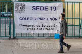 CIUDAD DE MÉXICO, 15MAYO2021.- Para la segunda fecha 62 mil 154 aspirantes realizarán el examen de admisión a nivel superior de la Universidad Nacional Autónoma de México (UNAM) en las distintas sedes de aplicación, siguiendo las medidas sanitarias para evitar la propagación de Covid-19, como uso de cubrebocas, careta, aplicación de gel antibacterial y medición de temperatura. FOTO: MARIO JASSO/CUARTOSCURO.COM