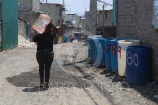 CIUDAD DE MÉXICO, 15MAYO2021.- Habitantes de la colonia Patria y Libertad, alcaldía Iztapalapa, no cuentan con tuberías de agua para que llegue el vital líquido, por lo que diariamente acuden de 5 a 8 pipas para subsistir 450 casas que viven en esa colonia. Cada hogar cuenta con botes en la entrada y cada vez que necesiten el líquido vacían cubetas para sus necesidades básicas. FOTO: GRACIELA LÓPEZ /CUARTOSCURO.COM