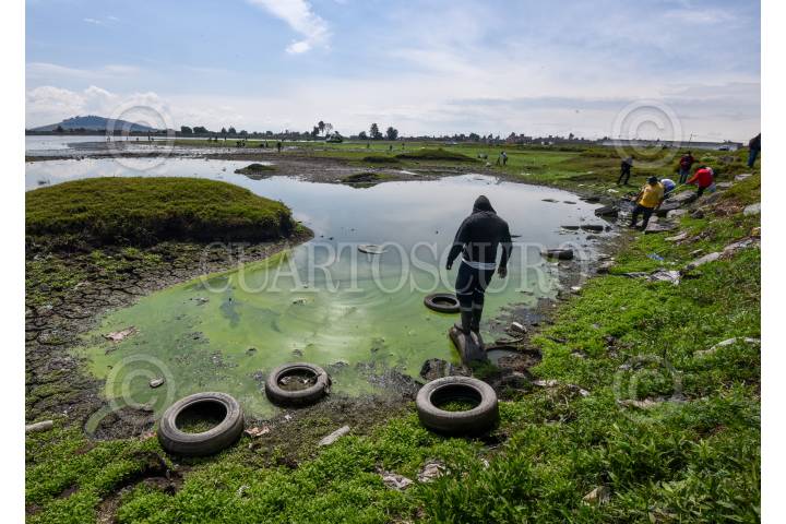 TOLUCA, ESTADO DE MÉXICO, 16MAYO2021.- Vecinos de San Pablo Autopan e integrantes de Acción Juvenil por el Cambio del Pueblo A. C., realizaron una jornada de limpieza en la laguna de Palmillas en Toluca, la cual debido a la sequía que se presentaba dejó al descubierto la contaminación qué existe en este lugar, realizarán otra jornada de limpieza en 15 días en este mismo cuerpo de agua para tratar de recuperarlo. FOTO: CRISANTA ESPINOSA AGUILAR /CUARTOSCURO.COM