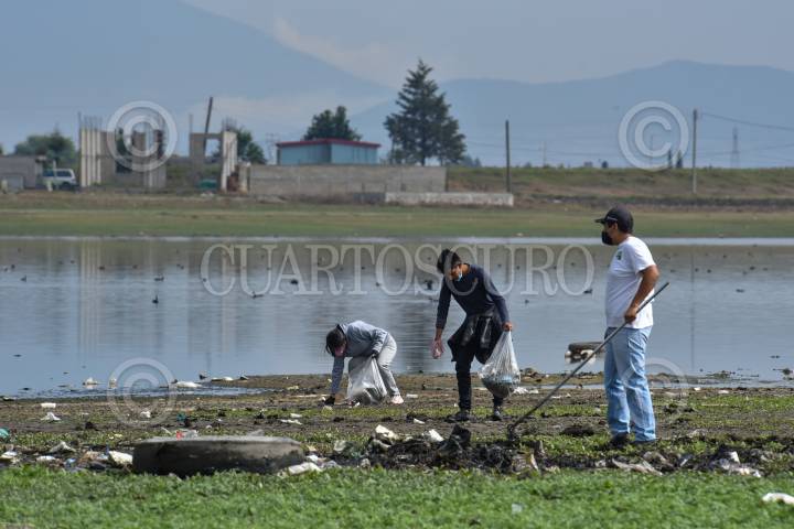 TOLUCA, ESTADO DE MÉXICO, 16MAYO2021.- Vecinos de San Pablo Autopan e integrantes de Acción Juvenil por el Cambio del Pueblo A. C., realizaron una jornada de limpieza en la laguna de Palmillas en Toluca, la cual debido a la sequía que se presentaba dejó al descubierto la contaminación qué existe en este lugar, realizarán otra jornada de limpieza en 15 días en este mismo cuerpo de agua para tratar de recuperarlo. FOTO: CRISANTA ESPINOSA AGUILAR /CUARTOSCURO.COM