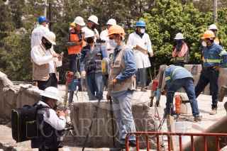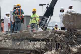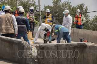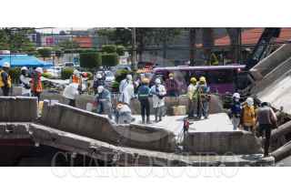CIUDAD DE MÉXICO. 17MAYO2021.- Trabajos de peritos expertos de la Fiscalía de Justicia de la Capital, en el sitio donde colapso el Metro de la línea 12, estación Olivos. FOTO: VICTORIA VALTIERRA/CUARTOSCURO.COM