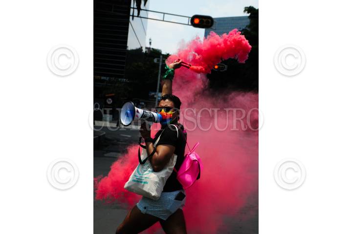 CIUDAD DE MÉXICO, 17MAYO2021.- Integrantes del colectivo VIHVE LIBRE y miembros de la comunidad LGBTI, realizaron una marcha para conmemorar el día internacional contra la homofobia, bifobia y transfobia, los activistas avanzaron desde el Ángel de la Independencia con rumbo a las oficinas del STC Metro. Durante su trayecto gritaron consignas en pro del respeto a sus derechos así como la exigencia a las autoridades de brindarles seguridad ante los actos de violencia que padecen. FOTO: DANIEL AUGUSTO /CUARTOSCURO.COM