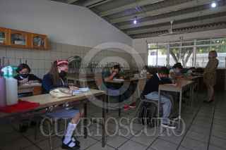 GUADALAJARA, JALISCO, 17MAYO2021.- Hoy en el estado 13 mil planteles de educación básica y media superior, reabren sus aulas para atender problemáticas de rezago y alistar el inicio del nuevo ciclo escolar tras 15 meses cerradas debido a la pandemia sanitaria por Covid-19. FOTO: FERNANDO CARRANZA GARCIA / CUARTOSCURO.COM