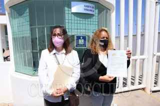 ZACATECAS, ZACATECAS, 17MAYO2021.- Lucía Venegas Rodríguez, una ciudadana que manera circunstancial, tuvo acceso a una grabación de audio en la que se escucha cómo se comprometen los recursos públicos en el marco del proceso electoral por parte de autoridades de gobierno de Zacatecas, y Blanca Lilia Rodríguez Barragán, secretaria general del Comité Ejecutivo Estatal de MORENA, acudieron a presentar una denuncia ante la Fiscalía General de República (FGR) contra el gobernador Alejandro Tello Cristerna y el secretario de Desarrollo Social, Roberto Luévano Ruíz, por su supuesta intromisión en el actual proceso electoral para respaldar, con recursos públicos, a los candidatos de la coalición Va por Zacatecas (PRI-PAN y PRD), entre ellos la abanderada a la gubernatura Claudia Anaya Mota y el aspirante a la presidencia municipal de Guadalupe, Osvaldo Ávila. FOTO: MORENA ZACATECAS/CUARTOSCURO.COM