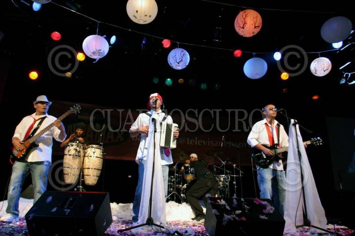 MEXICO, D.F., 22AGOSTO2006.- Se realizó la presentación del nuevo grupo musical Volumen X, producido por A.B. Quintanilla. En la imagen Pauly, el vocalista y acordeonista , canta el primer sencillo "Sigo Pensando en Ti", en un mini concierto en el Lunario. FOTO: Moisés Pablo/CUARTOSCURO.COM