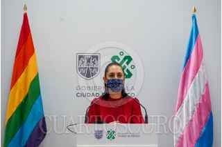 CIUDAD DE MÉXICO, 17MAYO2021.- Claudia Sheinbaum Pardo, Jefa de Gobierno, informó en su videoconferencia que por la conmemoración del Día Internacional contra la Homofobia, la Transfobia, la Lesbofobia, la Bifobia, todas las discriminaciones a las personas LGBT+; los edificios del gobierno capitalino serán iluminadas con los colores de la bandera multicolor. FOTO: GOBIERNO DE LA CIUDAD DE MÉXICO/CUARTOSCURO.COM