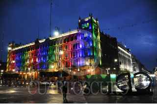 CIUDAD DE MÉXICO, 17MAYO2021.- El edificio de Gobierno de la Ciudad de México se iluminó con los colores de la bandera arcoiris que representa al movimiento LGBTI, esto, debido a la conmemoración del Día Internacional Contra la Homofobia, Bifobia y Transfobia. FOTO: DANIEL AUGUSTO /CUARTOSCURO.COM