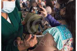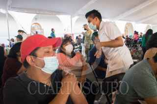 CIUDAD DE MÉXICO. 18MAYO2021.- Decenas de Maestros, del nivel básico, acudieron esta mañana a vacunarse a la escuela primaria Benito Juárez, en la alcaldía de Cuauhtémoc. FOTO: VICTORIA VALTIERRA/CUARTOSCURO.COM