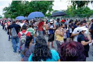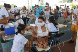 CANCÚN, QUINTANA ROO, 18MAYO2021.- Abarrotan módulos de vacunación contra el Covid-19 durante el primer día para adultos de 50 a 59. Las filas alcanzaron varias cuadras en espera de ser inmunizados en las diferentes sedes. FOTO: ELIZABETH RUIZ/CUARTOSCURO.COM