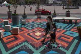 CIUDAD DE MÉXICO, 18MAYO2021.- Una madre camina con sus hijos en la franja peatonal de Plaza de la Constitución. FOTO: MOISÉS PABLO/CUARTOSCURO.COM