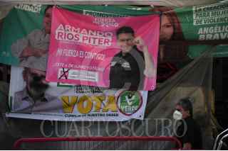 CIUDAD DE MÉXICO, 18MAYO2021.- Durante las campañas electorales rumbo a los comicios del próximo 6 de junio, los partidos políticos utilizan distintos materiales para promover a sus candidatos, tales como espectaculares, mantas o folletos que a la postre terminan perjudicando el paisaje urbano, saturandolo con esos materiales que al término de las elecciones, dejarán cerca de 10 mil toneladas de basura. FOTO: DANIEL AUGUSTO /CUARTOSCURO.COM