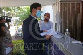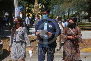 GUADALAJARA, JALISCO, 18MAYO2021.- Pedro Kumamoto candidato a la Presidencia Municipal de Zapopan por el partido Futuro, acudió al Instituto Electoral y de Participación Ciudadana de Jalisco (IEPC), para presentar denuncias por delitos electorales en contra del candidato de Movimiento Ciudadano Juan José Frangie, quien presuntamente amenazo al candidato de Futuro, Kumamoto. FOTO: FERNANDO CARRANZA GARCIA / CUARTOSCURO.COM