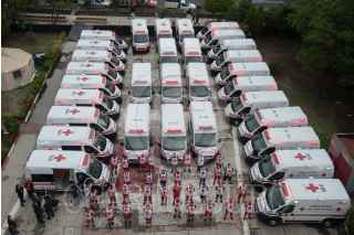 CIDAD DE MÉXICO, 18MAYO2021.- Nacional Monte de Piedad IAP y Fundación Azteca realizaron la entrega de 46 nuevas ambulancias a la Cruz Roja Mexicana que serán distribuidas en diferentes delegaciones de la institución en el país. FOTO: MARIO JASSO/CUARTOSCURO.COM