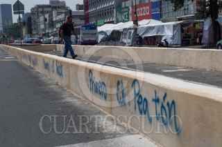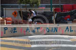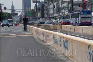 CIUDAD DE MÉXICO, 19MAYO2021.- Vecinos de la colonia Santa María la Ribera y de la Tabacalera han mostrado su inconformidad por lo que ellos llaman un "muro peatonal", y es que desde hace varias semanas trabajadores la Secretaría de Obras y Servicios (Sobse) se encuentran realizando obras en las banquetas y en el camellón de la avenidas Puente de Alvarado, Ribera de San Cosme y calzada México-Tacuba. Dentro de estos trabajos destaca la construcción un barrera de concreto que fue colocada en el camellón que dificulta el cruce de los peatones sobre estas vialidades. Los inconformes señalaron que este "muro peatonal" dificulta el paso para personas en silla de ruedas o muletas, y que incentivan que los coches aumenten su velocidad. FOTO: MOISÉS PABLO/CUARTOSCURO.COM