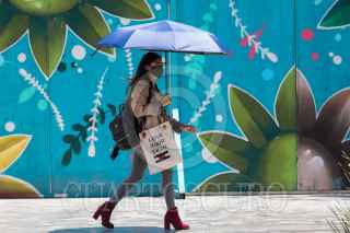 CIUDAD DE MÉXICO, 20MAYO2021.- Tras tener varios días lluviosos el día de hoy los capitalinos volvieron a sacar los paraguas, pero no por el agua, si no por el intenso calor que se dejo sentir. FOTO: MOISÉS PABLO/CUARTOSCURO.COM