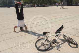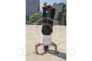 CIUDAD DE MÉXICO. 20MAYO2021.- Aprovechando el jueves en la mañana se hace ejercicio y equilibrio en la explanada del Monumento a la Revolución. FOTO: VICTORIA VALTIERRA/CUARTOSCURO.COM