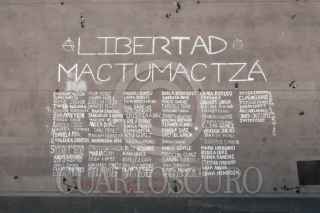 CIUDAD DE MÉXICO, 21MAYO2021.- Normalistas e integrantes de organizaciones sociales realizaron una pinta con los nombres de los 95 estudiantes de la Escuela Normal Rural de Mactumactzá que fueron detenidos el pasado 18 de mayo mientras se manifestaban en contra de aplicación de exámenes en línea. Recientemente un juez de control del penal "El Almate" dictó prisión preventiva a los jóvenes por los presuntos delitos de: robo con violencia, motín, delito, atentado contra la integridad del estado. FOTO: MARIO JASSO/CUARTOSCURO.COM