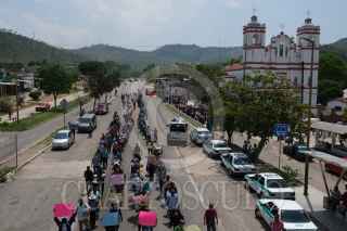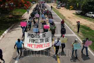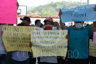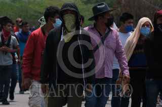 CINTALAPA, CHIAPAS, 21MAYO2021.- Padres de familia de los 95 estudiantes detenidos el pasado martes marcharon acompañados de estudiantes normalistas y maestros de la sección siete de la CNTE desde Lázaro Cárdenas hasta el Centro Penitenciario número 14 para exigirle al estado la liberación de sus hijos e hijas quienes se encuentras privados de su libertad en dicho centro. Al llegar a las instalaciones del CERSS 14, los manifestantes pidieron a las autoridades los dejaran entrar para ver a los estudiantes detenidos, de cinco en cinco los padre fueron ingresando mientras el tránsito se encuentra bloqueado en las inmediaciones por quienes exigen justicia. FOTO: ISABEL MATEOS /CUARTOSCURO.COM