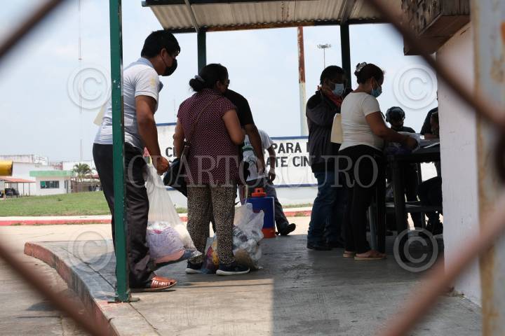 CINTALAPA, CHIAPAS, 21MAYO2021.- Padres de familia de los 95 estudiantes detenidos el pasado martes marcharon acompañados de estudiantes normalistas y maestros de la sección siete de la CNTE desde Lázaro Cárdenas hasta el Centro Penitenciario número 14 para exigirle al estado la liberación de sus hijos e hijas quienes se encuentras privados de su libertad en dicho centro. Al llegar a las instalaciones del CERSS 14, los manifestantes pidieron a las autoridades los dejaran entrar para ver a los estudiantes detenidos, de cinco en cinco los padre fueron ingresando mientras el tránsito se encuentra bloqueado en las inmediaciones por quienes exigen justicia. FOTO: ISABEL MATEOS /CUARTOSCURO.COM