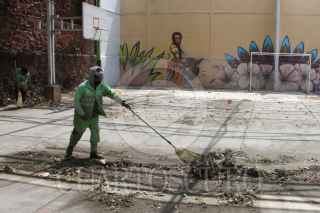 CIUDAD DE MÉXICO 21MAYO2021.- Luego de ser vandalizada con graffitis la escuela Primaria Profesor Cecilio Mijares Poblano, recibió mantenimiento tanto dentro como fuera del plantel, poda de árboles y arbustos, limpieza en patios y escaleras así como pintura al exterior de la escuela. Se espera que para el día de mañana sea remplazado el pizarrón que resultó dañado. Cabe mencionar que dichos trabajos son previos a el regreso a clases en la ciudad. FOTO: ROGELIO MORALES /CUARTOSCURO.COM