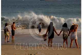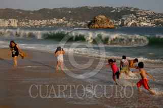 ACAPULCO, GUERRERO, 21MAYO2021.- El fenómeno denominado mar de fondo continúa provocando fuertes oleajes en playas de Acapulco. Autoridades piden a turistas y bañistas extremar precauciones para evitar algún incidente mayor. FOTO: CARLOS ALBERTO CARBAJAL/CUARTOSCURO.COM