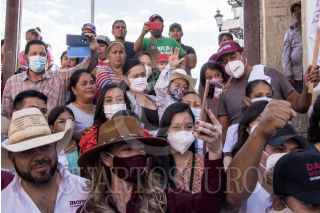 CUAUHTÉMOC, ZACATECAS, 21MAYO2021.- David Monreal, candidato la gubernatura por la coalición "Juntos Haremos Historia" entre los partidos Morena, Verde Ecologista de México, Nueva Alianza y Partido del Trabajo; realizó un mitin proselitista con simpatizantes del municipio. FOTO: ADOLFO VLADIMIR /CUARTOSCURO.COM