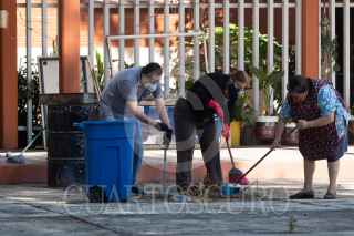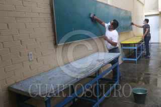 CIUDAD DE MÉXICO, 22MAYO2021.- Padres de familia de la Escuela Secundaria Diurna #82 "Abraham Lincoln", comenzaron a realizar la limpieza de las instalaciones para el inicio de clases el próximo 7 de junio, la cual será de forma escalonada y con medidas preventivas estrictas para evitar contagios de Covid-19. FOTO: GRACIELA LÓPEZ /CUARTOSCURO.COM