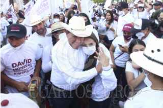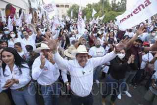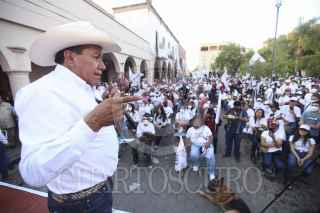 TLALTENANGO, ZACATECAS, 22MAYO2021.- David Monreal Ávila, candidato a la gubernatura por la coalición "Juntos Haremos Historia", entre los partidos Morena, Nueva Alianza, Partido del Trabajo y Verde Ecologista de México, realizó en la cabecera municipal un mitin con simpatizantes, parte de los cierres distritales. FOTO: CORTESIA DM /CUARTOSCURO.COM