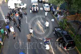 MÉXICO D.F., 29AGOSTO2006.- Una persona fue asesinada a balazos al oponerse al asalto y robo de su camioneta después de dejar a su hijo en la escuela, los delincuentes escaparon en una moto por la calzada del hueso y miramontes en coapa. FOTO: Pedro Marrufo/CUARTOSCURO.COM