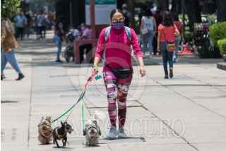 CIUDAD DE MÉXICO, 23MAYO2021.- Una mujer paseo con sus perritos en Paseo de la Reforma. FOTO: MOISÉS PABLO/CUARTOSCURO.COM