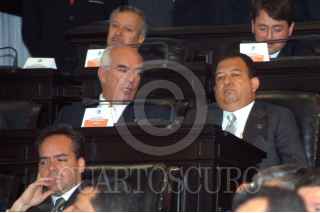 MÉXICO D.F. 29AGOSTO2006.- Los Senadores, Yeidckol Polevnsky Gurtwits y Manlio Fabio Beltrones, durante la primera sesión ordinaria de la LX Legislatura, en la camara de senadores. FOTO: Guillermo Perea/CUARTOSCURO.COM