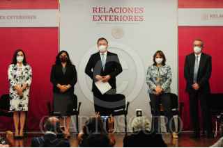 CIUDAD DE MÉXICO, 24MAYO2021.- Marcelo Ebrard, secretario de Relaciones Exteriores e Irma Eréndira Sandoval, titular de la Secretaría de Función Pública, encabezaron la presentación del Programa de Gestión Diplomática de las Vacunas contra el Covid-19. FOTO: DANIEL AUGUSTO /CUARTOSCURO.COM