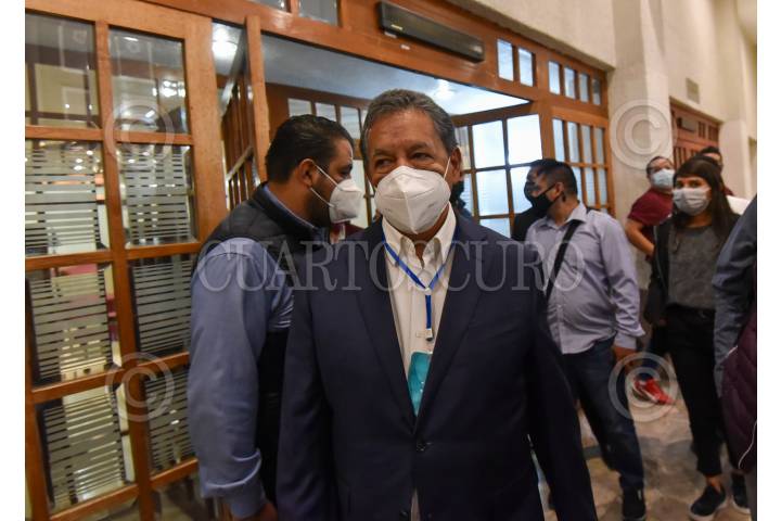 TOLUCA, ESTADO DE MÉXICO, 24MAYO2021.- Los senadores de MORENA Higinio Martínez Miranda y Martha Guerrero Sánchez acompañaron en conferencia de prensa al candidato de la coalición Juntos Haremos Historia Juan Rodolfo Sánchez Gómez, en donde exigieron que el Gobierno del Estado de México saque las manos del proceso electoral, asegurando que al menos tres secretarios estales están trabajando en levantar la campaña del abanderado de la coalición Va por el Estado de México en Toluca. FOTO: CRISANTA ESPINOSA AGUILAR /CUARTOSCURO.COM