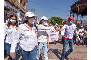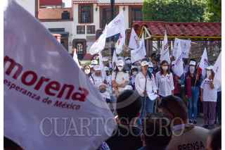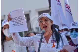 METEPEC, ESTADO DE MÉXICO, 25MAYO2021.- Gabriela Gamboa candidata a la alcaldía de Metepec por la coalición “Juntos Haremos Historia” en conferencia de prensa aseguró que la grabación que fue difundida por el abanderado de la coalición “Va por el Estado de México” Fernando Flores, fue manipulada y esta platica tiene un año que sucedió, y ahora está siendo utilizada para atacar su campaña, a su familia y sus simpatizantes. FOTO: CRISANTA ESPINOSA AGUILAR /CUARTOSCURO.COM