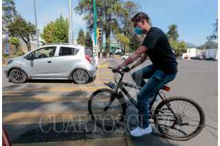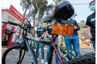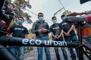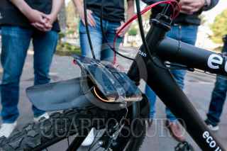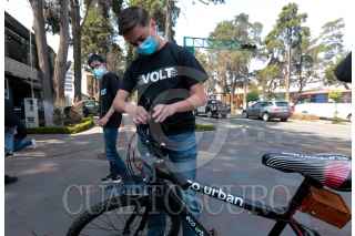 TOLUCA, ESTADO DE MÉXICO, 25MAYO2021.- Estudiantes mexiquense e integrantes de la organización civil Eco Urban presentaron una bicicleta ecológica, la cual tiene instalados paneles solares y un dinamo con lo cual producen energía para cargar dispositivos electrónicos, buscan fomentar el uso de este medio de transporte para poder ayudar al medio ambiente y al mismo tiempo los usuarios cuiden su salud; se pretende reproducir este prototipo para crear una flotilla de bicis para escuelas y uso público. FOTO: CRISANTA ESPINOSA AGUILAR /CUARTOSCURO.COM
