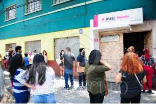 CIUDAD DE MÉXICO, 25MAYO2021.- Este martes es el último día para tramitar la recuperación de la credencial para votar en los módulos del Instituto Nacional Electoral, en el que se encuentra ubicado sobre Calzada de Tlalpan, una fila comenzaba a formarse afuera de sus instalaciones para realizar dicho trámite. FOTO: DANIEL AUGUSTO /CUARTOSCURO.COM