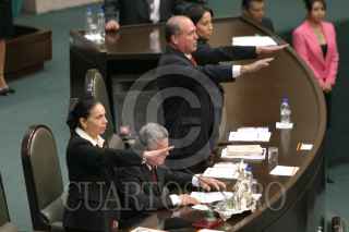 MEXICO, D.F., 29AGOSTO2006.- Jorge Zermeño, presidente de la mesa directiva, les tomo protesta a los integrantes de la misma, María Elena Alvárez, Arnoldo Ochoa y Ruth Zavaleta, quienes estaran a cargo de recibir a el presidente Fox en su VI Informe de Gobierno en la Cámara de Diputados. FOTO: Moisés Pablo/CUARTOSCURO.COM
