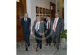MEXICO, D.F., 29AGOSTO2006.- El secretario de Hacienda, Francisco Gil Díaz, el ministro jubilado Vicente Aguinaco Alemán, el secretario de Educación Pública, Reyes Tamez Guerra y el presidente de la Suprema Corte de Justicia de la Nación (SCJN), ministro Mariano Azuela Huitrón, recorren la Pinacoteca Retratos vivos, inaugurada hoy en el Alto Tribunal. La obra pictórica esta conformada por rostros de quienes han sido protagonistas y testigos de la SCJN en sus diversas épocas. FOTO: Victor Ortíz/CUARTOSCURO.COM